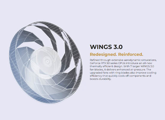 7枚のより大きなWINGS 3.0ファンブレードにより、空気圧が強化されました。