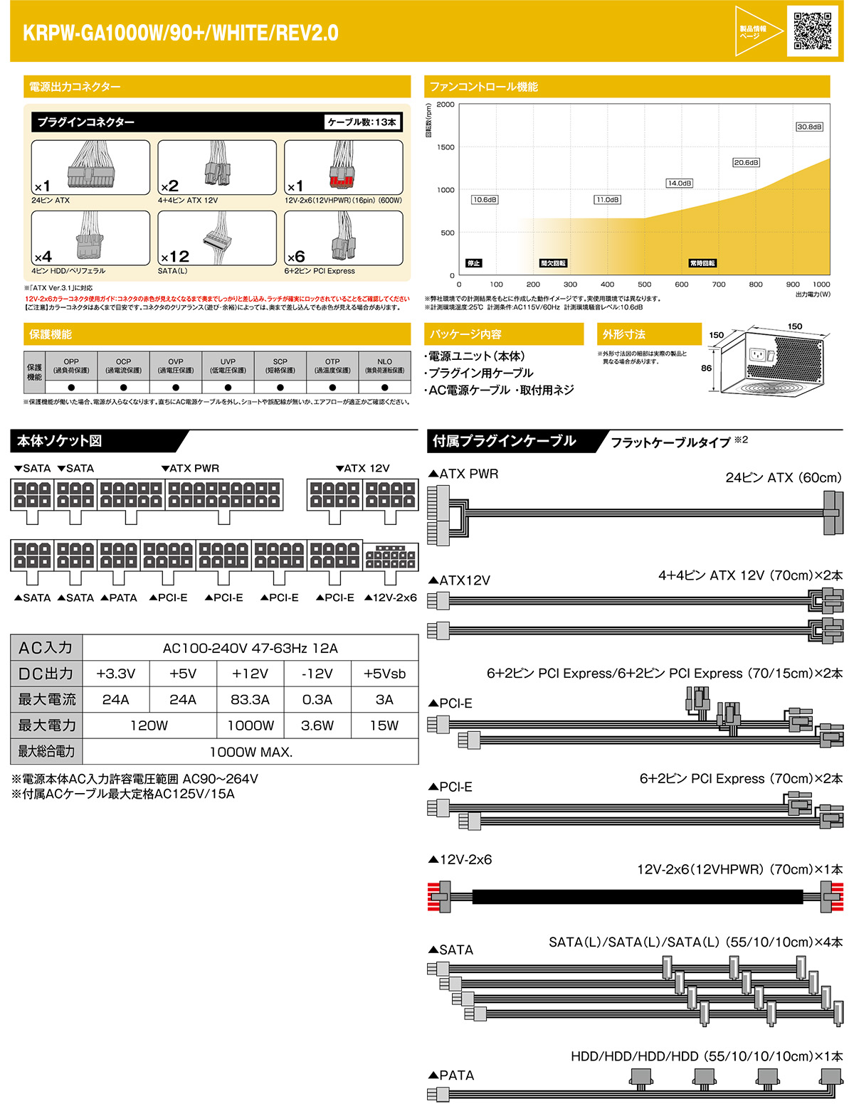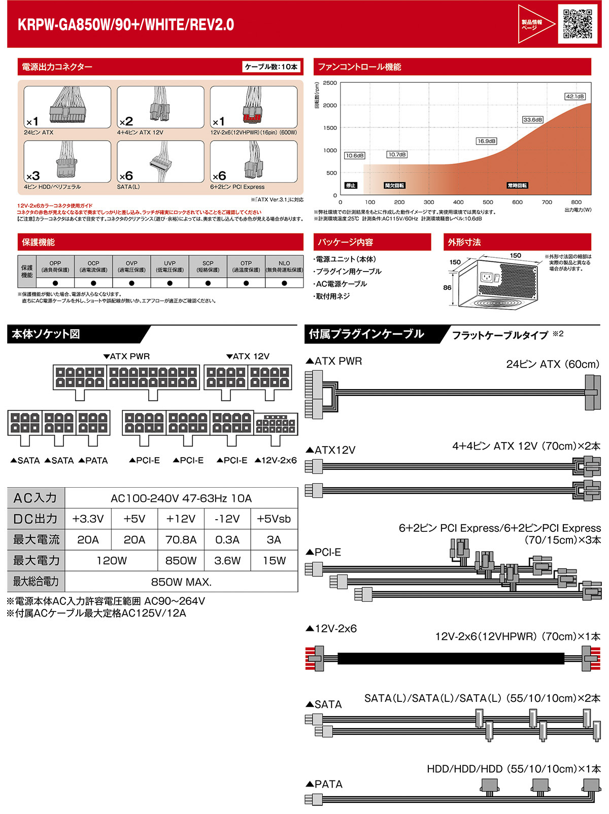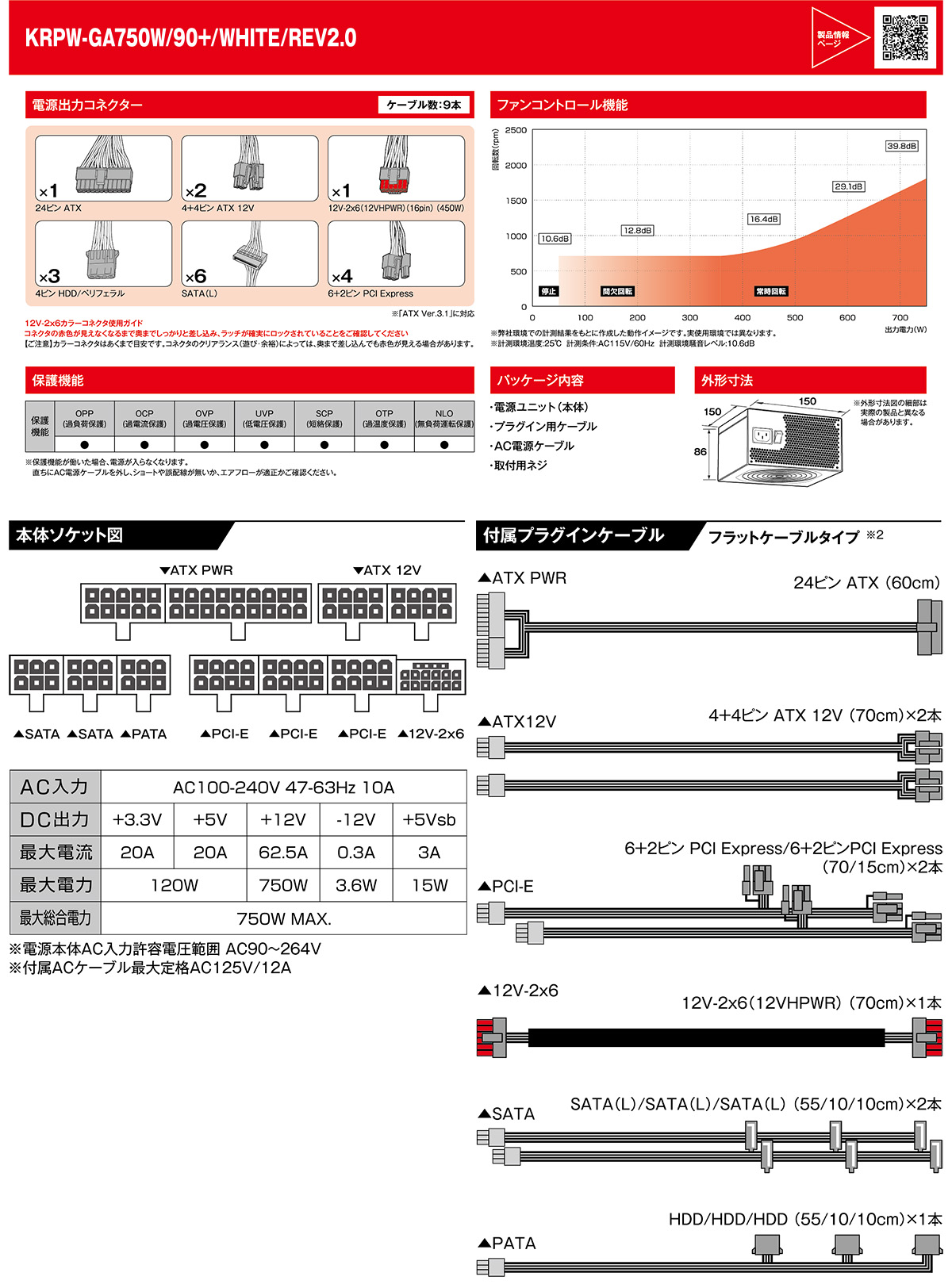 KRPW-GA1000W/90+/REV2.0:ブラック KRPW-GA850W/90+/REV2.0:ブラック KRPW-GA750W/90+/REV2.0:ブラック KRPW-GA1000W/90+/WHITE/REV2.0:ホワイト KRPW-GA850W/90+/WHITE/REV2.0:ホワイト KRPW-GA750W/90+/WHITE/REV2.0:ホワイト |